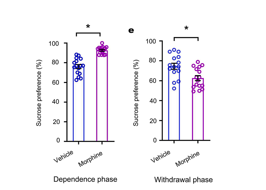 吗啡成瘾小鼠在停止吗啡供给后出现快感缺失