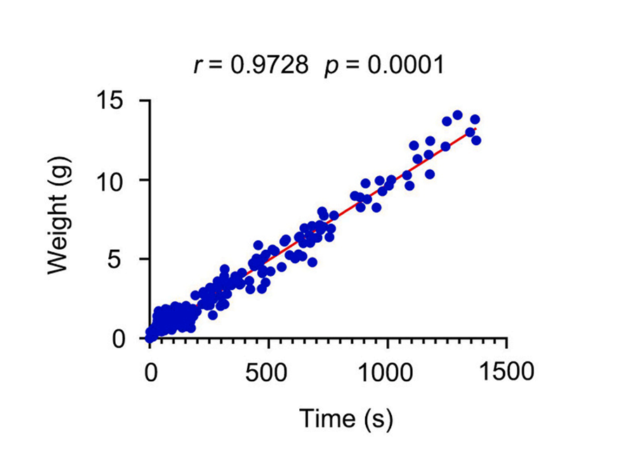 南京医科大学药学院通过测试自行设计开发新型糖水偏好测量系统,发现小鼠饮水时间与饮水量成显著的线性相关性,展示出了很高的准确性与一致性;利用饮水时间计算的偏好也能较好地评估小鼠的快感缺失或成瘾状态。