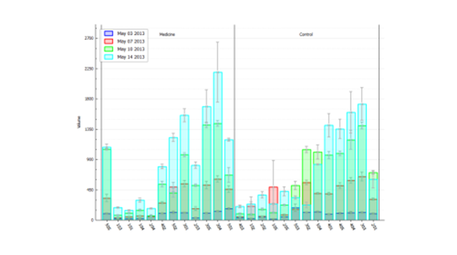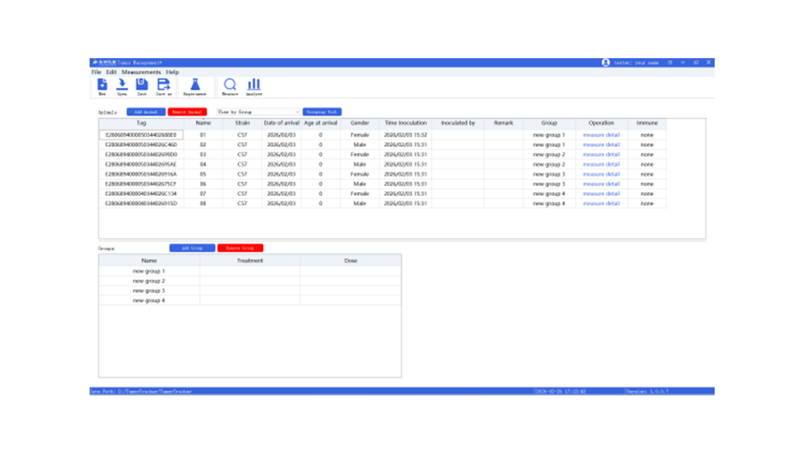 支持多只动物、多组数据对比分析,直观呈现肿瘤生长趋势与药物疗效。
