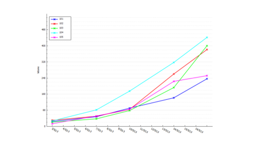 一组动物肿瘤体积随时间变化