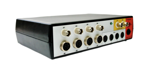 数据采集器是市场上最先进的高度通用型生理数据采集系统,其包含 4 个标准 BNC 输入、4 个 DIN8 输入、2 个事件标记输入、8 个数字信号输入、1 个低压/2个高压刺激器、8 个数字信号输出、以及 4 个 iWire 输入接口。该数据采集器以其高分辨率、低噪音和高度灵活性等特点,广泛应用于各个研究领域。在心电记录上,可以接受生物电采集盒,用于心电、肌电、动作单位等测量,支持拓展4通道生物电记录。