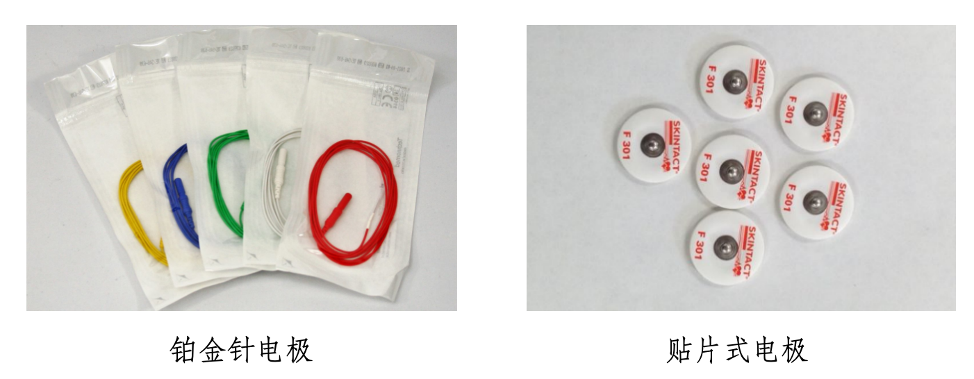 铂金针电极一端通过刺入动物皮下,采集电信号,一端连接采集器使用,一般适用于大小鼠等小动物的生物电采集;贴片式电极包含导电凝胶和采集电极,一般适用于中大型动物或人体的生物电采集。