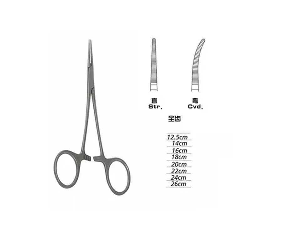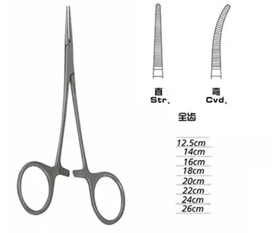 常规止血钳是一种手术器械,通过夹住血管或组织来控制出血。一般由握把,钳头,钳臂和锁齿构成。钳头有直头、弯头,咬合面有全齿、半齿和带钩的款式,夹持力较强,主要应用于止血,组织固定和缝线固定等。