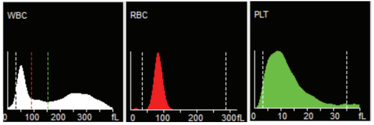 玉研三分类血液分析仪可以提供3个直方图,直观了解白细胞、红细胞、血小板的分布情况,从而提升诊断水平;