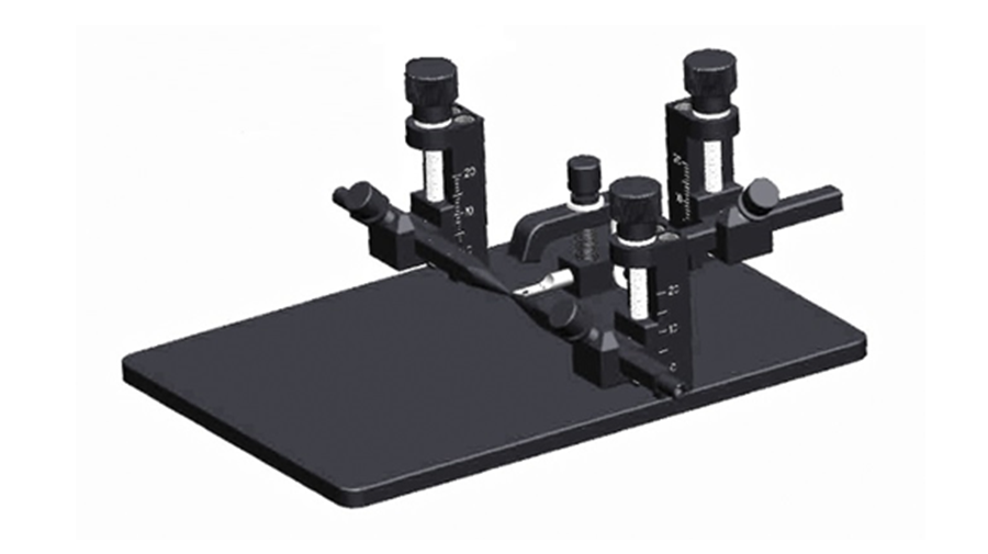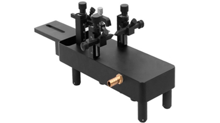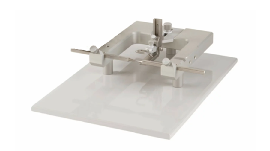 脑立体定位仪同款 U 型底座,手术空间充裕;后期可加配三维操作臂升级。默认大鼠配置,更换小鼠适配器即可切换。