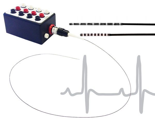 电生理导管系统由八电极电生理导管、电极分配盒及第三方生物电放大器及刺激器组成。