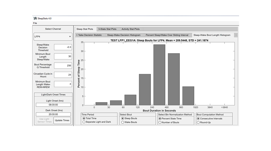 专业分析软件:自动进行睡眠/觉醒评分,降低实验人员专业性要求;具有采集和处理多通道数据文件的能力,可分析获得睡眠/觉醒评分、呼吸率、活动度等参数。