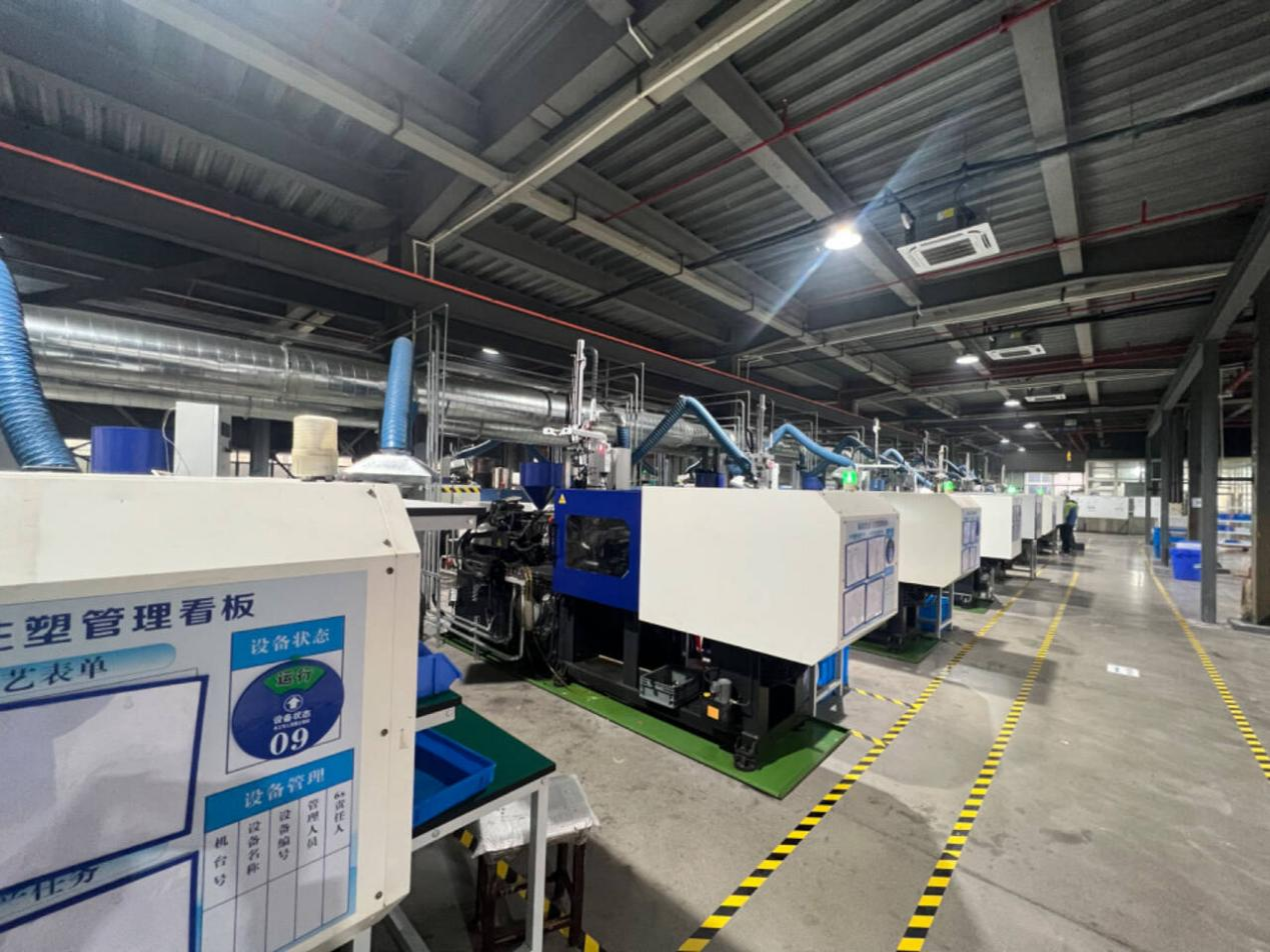 走进玉研的生产基地,首先震撼你的不是堆积如山的成品,而是这一排排整齐列队的精密注塑机群。