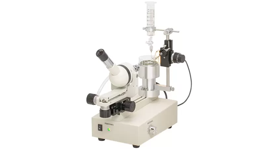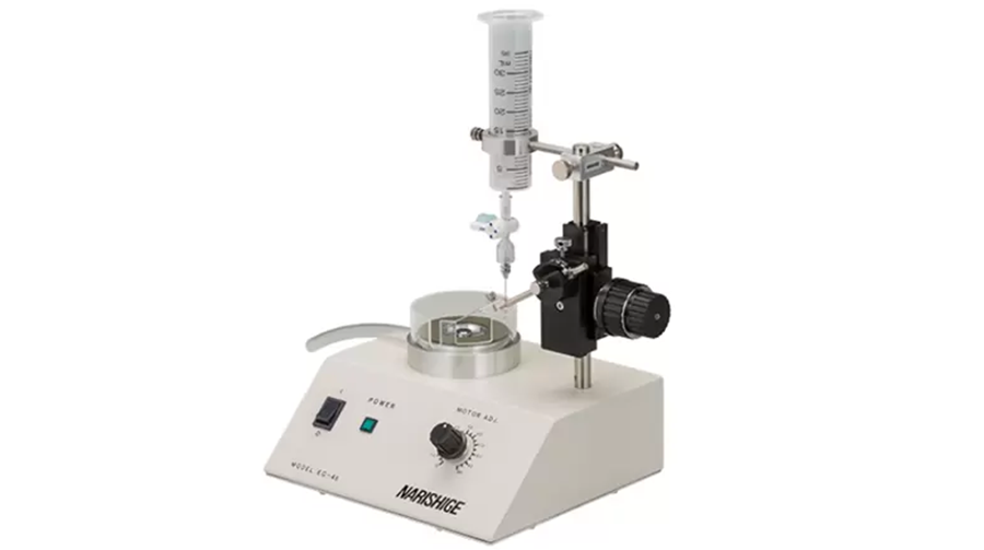 磨针仪提供一个光学平面的磨面盘,在显微镜下移液管(玻璃微电极、显微注射针等)与磨面盘接触,通过加入的适量研磨浆,以一定的转速,将目标物前端制作成尖锐的针尖,亦可处理成不同斜切角度。这种通过磨针仪处理后的微电极、显微注射针、移液管等,提高了微电极的线性、注射针更易于刺入细胞对细胞破坏更小、减少切面的毛刺等。