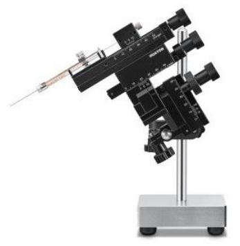 这款仪器适合配合显微镜使用,其夹持的玻璃电极也可以配合显微注射泵进行显微注射使用。