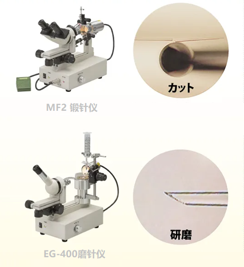 锻针仪除了磨光表面外,还可以切断、弯曲和形成倒钩,适合锻制成各种毛细针尖部。锻针仪也可制造不同类型针尖角度,进行触点拉伸、顶部大小修正和形成尖峰等,用来制造加工移液管前端、显微注射针、玻璃微电极、膜片钳电极等。用于电化学、膜片钳技术研究中探测电极的高阻封接,显微注射操作中玻璃注射针头处理以减少胞内(幼体)物质回流,体外受精吸管的制作等。